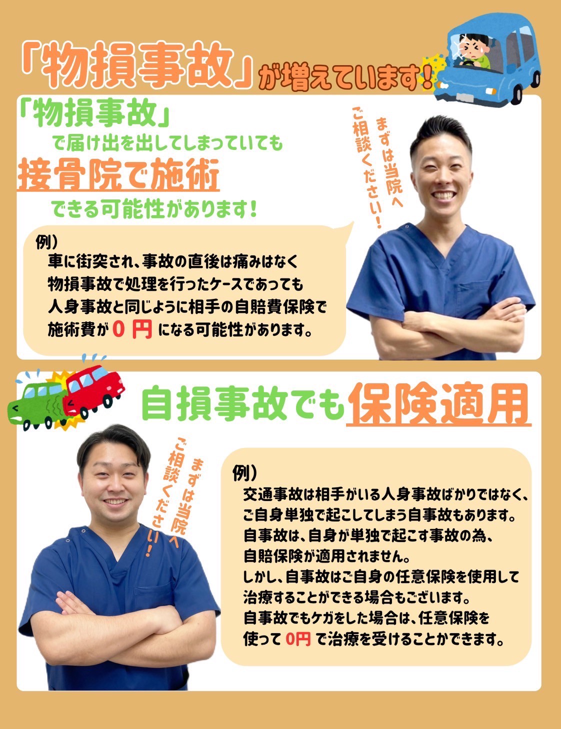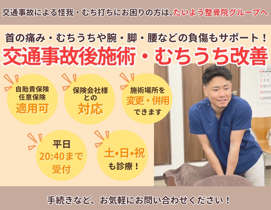 たいよう整骨院で「交通事故専門施術」を受けましょう!